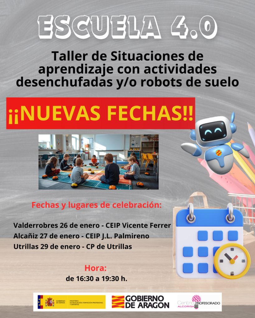 Debido a la huelga hemos tenido que cambiar las fechas de nuestras formaciones sobre situaciones de aprendizaje con actividades desenchufadas y/o robots de suelo. Lamentamos mucho las molestias. Aquí tenéis el cartel con las nuevas fechas.